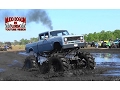 Old Body style international truck with a healthy Diesel plows in the deep mud at devil's garden mud clubs event.